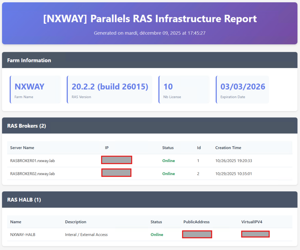 Dans la série avoir une infrastructure Parallels RAS c’est bien ! C’est encore mieux d’avoir un rapport générer rapidement et via un simple script PowerShell !