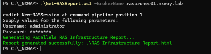 Ensuite rien de plus simple une command line :Get-Rasreport.ps1 -BrokerName monbroker.mondomaine.quelquechose.